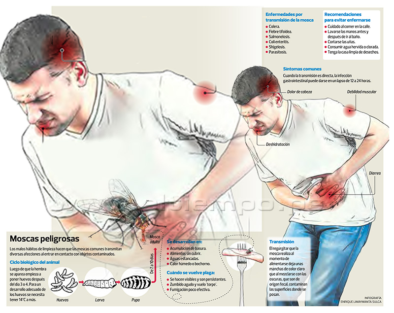 No le desagradan nada, estos insectos voladores son los primeros en llegar a los cadáveres, la materia orgánica en descomposición y las heces, donde se alimentan y ponen sus huevos. Es allí donde adquieren la mayor parte de los microorganismos que luego transportan por el aire para depositarlos en huéspedes como humanos, animales y plantas, pudiendo transmitir más de 100 enfermedades.